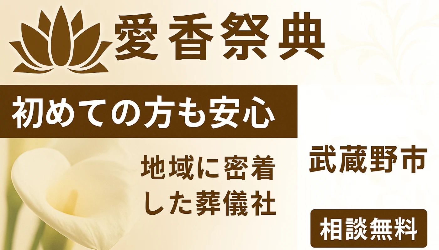 武蔵野市での葬儀に対応している葬儀社には東京葬儀(武蔵野営業所)(税込176,000円〜)、愛香祭典(税込235,400円〜)などがあります。口コミや費用、葬儀事例などを参考にして選びましょう。