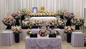 9年前に父、この度は母の葬儀でお世話になり ありがとうございました。 母のことを知っていて下さったこともあり、好んでいた紫色やピンク色のお花や薄紫色の棺を提案いただき、とても華やかな祭壇となりました。
