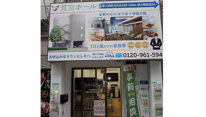 都立家政駅から徒歩5分。一日一組限定の、家族でゆっくりお別れができる自社式場があります。バリアフリーなのでお年を召した方や、小さな子供がいても安心ですね。