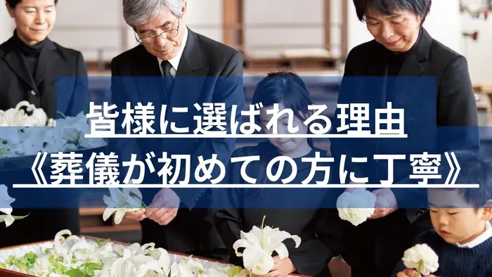 初めての葬儀でも、安心してお任せください。 分かりやすい説明、24時間の電話対応と丁寧な対応が強みの葬儀社です。葬儀の流れや手続きなど初めての方でも分かりやすくご案内、ご遺族様の負担を軽減します。経験豊富なスタッフが葬儀の準備からお見送りまで、親切丁寧にしっかりサポートします。