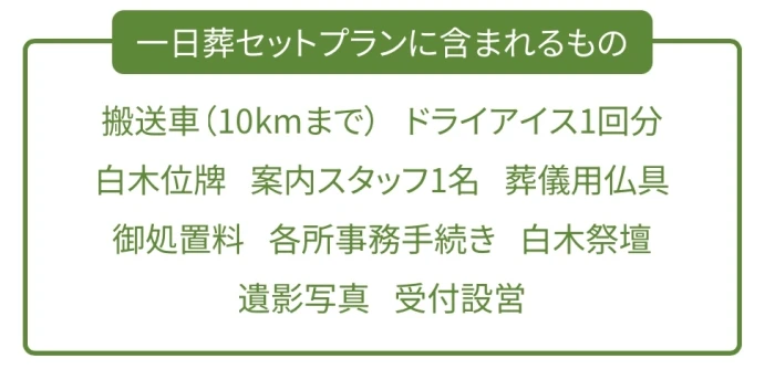 198,000円〜葬儀・告別式・火葬を1日で行うプランです。
