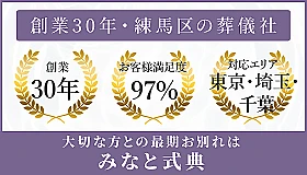 葬儀費用やしきたり、斎場事情などは、地域によって大きく異なります。そのため、その地域の葬儀事情に詳しい葬儀社にお願いすると安心です。みなと式典 練馬区営業所は創業から、練馬区に密着した葬儀社として地域の葬儀を行ってまいりました。「地元じゃないから、事情が分からない……」そんな方はまず、みなと式典 練馬区営業所にご相談ください。