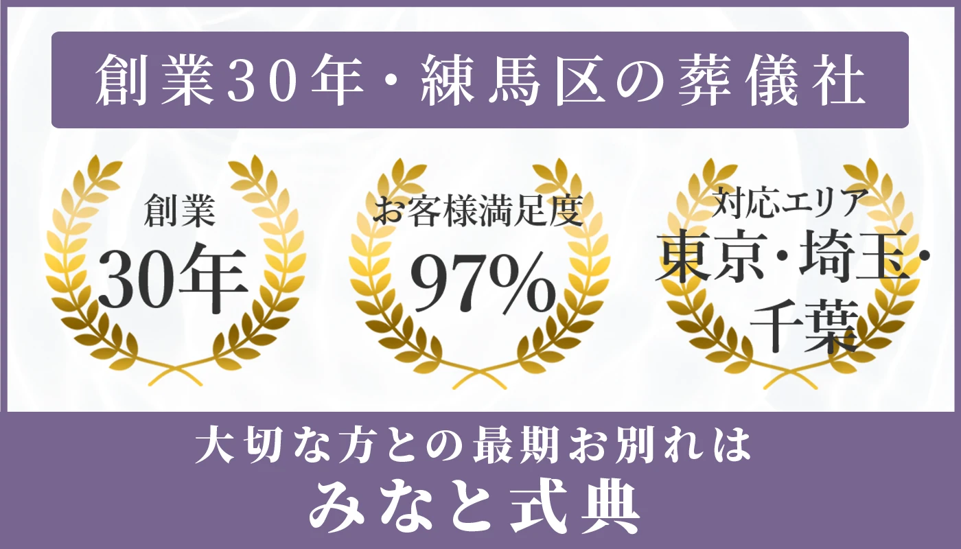 「みなと式典 練馬区営業所」は練馬区にある葬儀社です。平成6年に創業以来30年以上、明確な料金設定で不明な点を取り除き、ご家族の要望を感じ取ることを大切にしています。親切丁寧なスタッフがご家族に寄り添った提案をさせていただきます。みなと式典に依頼すれば、葬儀に対する不信感が安心に変わります。