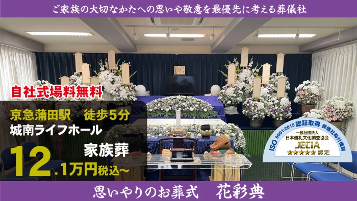 花彩典 城南ライフホールは一日葬や家族葬はもちろんのこと、火葬式や一般葬など様々な葬儀形式に対応しています。