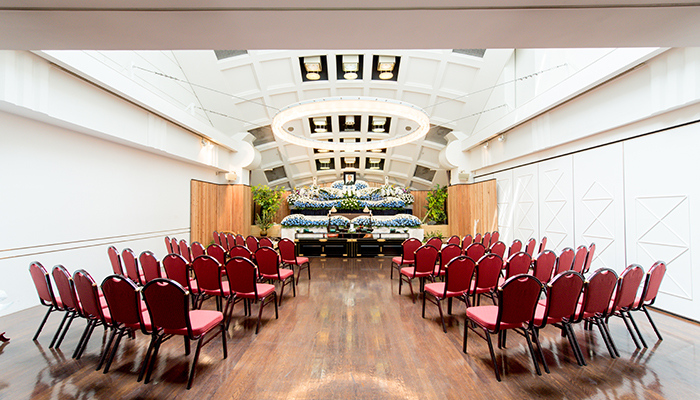 「玉泉院」はあらゆる形式、様々なニーズに合わせた葬儀に対応できる式場です。 車いすやベビーカーでもスムーズに移動できるバリアフリーも完備し、誰もが使いやすい環境を整えています。