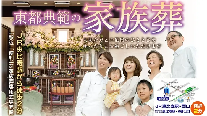 「東都典範」は、渋谷区の葬儀社です。創業70年の信頼と実績で、多くのご葬儀をとり行ってきました。「葬祭ディレクター」の資格を持つ経験豊富なスタッフが多数在籍。駅近自社式場「恵比寿ホール」と「きれいな霊安室」を完備。お近くの斎場・寺院・ご自宅でのご葬儀も承っております。24時間365日専属スタッフが心を込めてお手伝いいたしますので、安心してご相談ください。無料事前相談・館内見学も随時行っております。