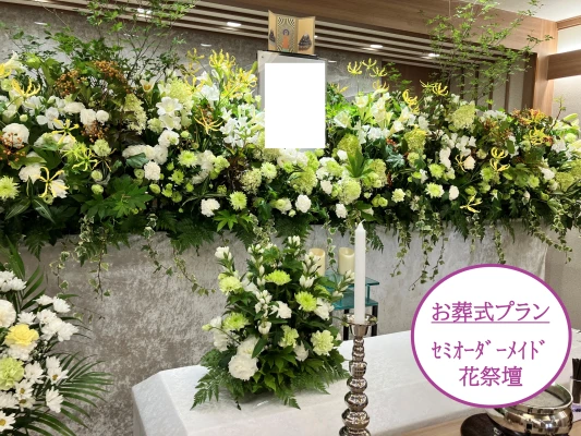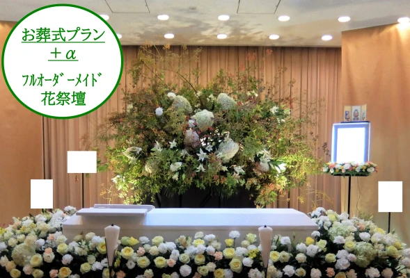 748,000円〜~50名程度対応可。オプション追加「少」。納棺師お支度、セミオーダーメイド花祭壇も含まれます。プラン内未利用商品サービスは減額処理「有」です。