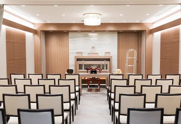 〇〇の自社式場「家族葬式場 小さな森の家 堀ノ内斎場」は、一日一家族限定の貸切りでご利用いただけます。格調高い式場は、家族葬にピッタリ。完全プライベートな空間で、故人との最後のひと時をお過ごしください。
