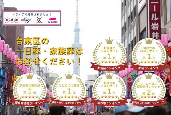 「東京葬儀」は、台東区にある葬儀社です。台東区民がよく使用する【町屋斎場】は実績多数です!「台東区の葬儀事情を知りたい」どんなことでもお気軽にお電話ください。【選ばれない理由(弱み)】は公式HPをご覧ください。