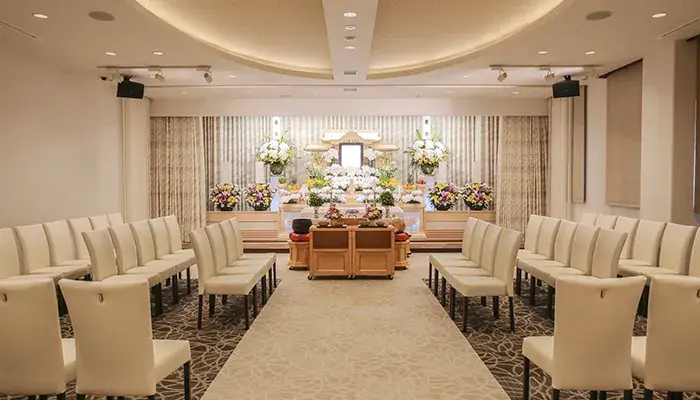 当社の式場をご利用の場合は、祭壇の飾り付けをはじめ、葬儀に関することはすべて当社で行います。