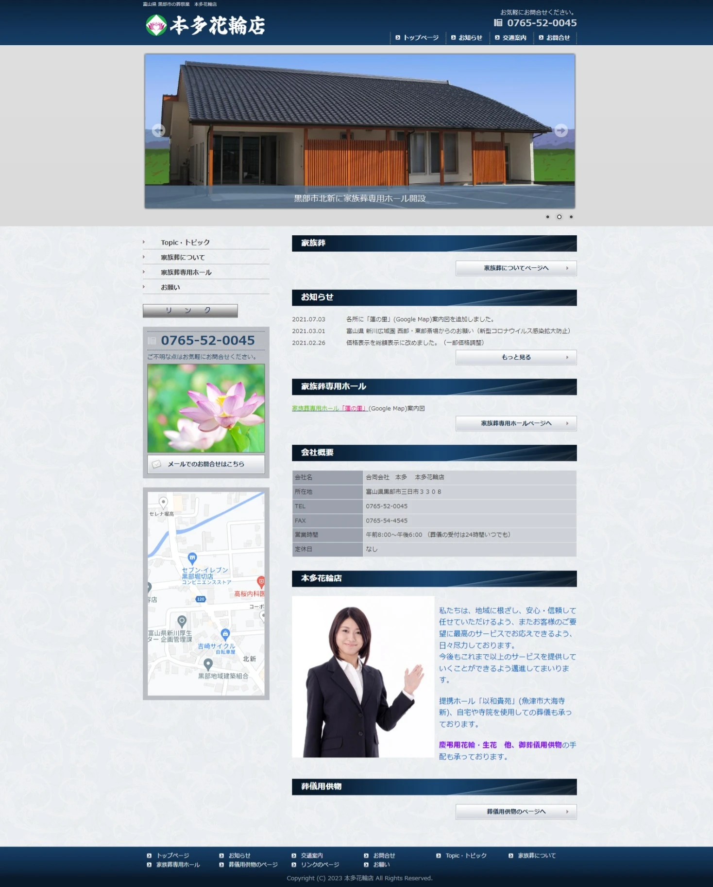 本多花輪店は黒部市に密着した葬儀社です。24時間365日、お迎えも事前相談にも対応しています。