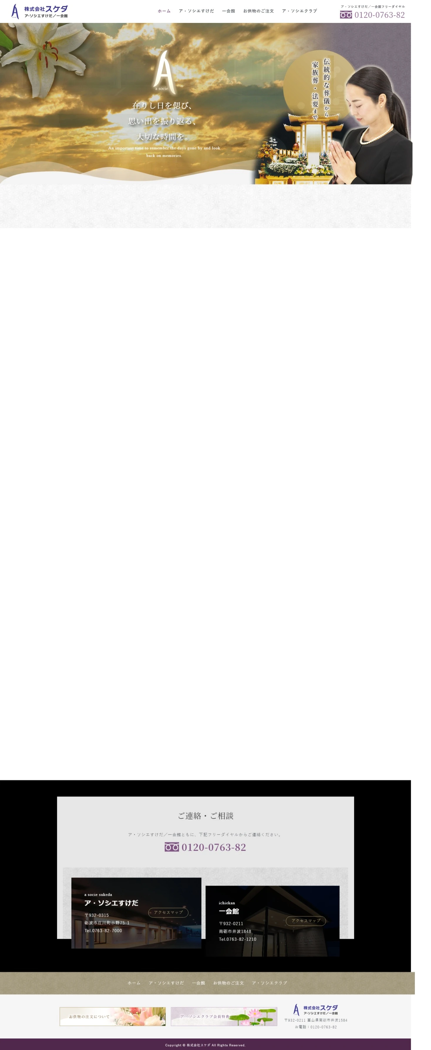 南砺市の葬儀社スケダでは、家族葬から自宅葬、社葬まで幅広くご対応いたします。通夜、葬儀に関することは、24時間365日体制でサポートいたします。心温まるお見送りをお手伝いします。