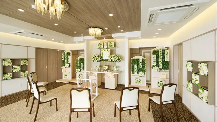 | 料金 | 直葬・火葬式 :¥115,500〜(税込) 家族葬 :¥259,600〜(税込) 一般葬 :¥415,800〜(税込) 一般葬 :¥535,700〜(税込) |