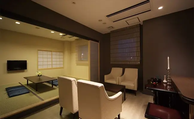 浴室付きのお部屋で仮眠もおとりいただけます。 遠方からお越しのご親族にも便利です。