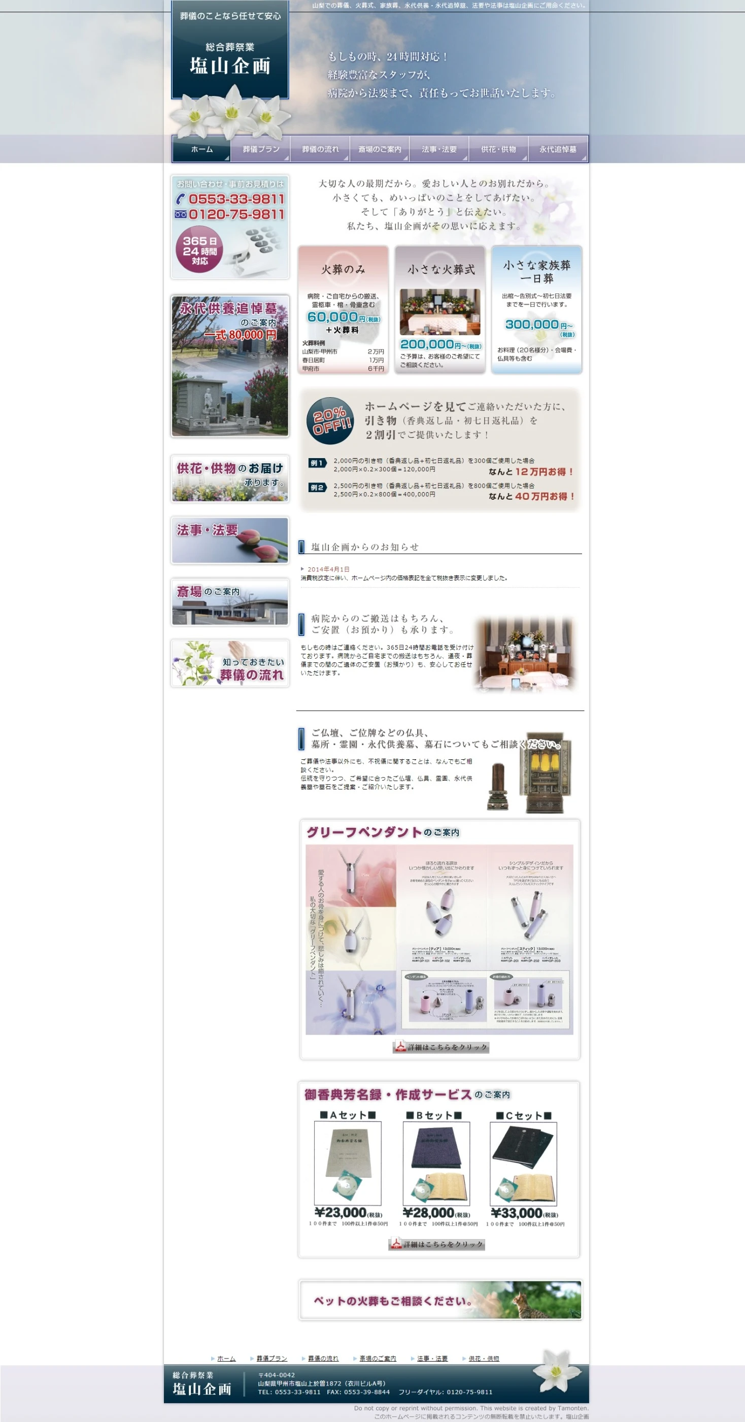 塩山企画は、各宗教・宗派の「火葬式・一日葬・家族葬・一般葬」などの葬儀に対応できる甲州市の葬儀社です。
