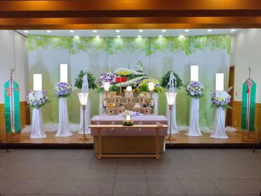"スタッフの皆さんには丁寧に対応していただき、何も問題無く終えられて本当に感謝しています。 祭壇の花も十分で良かったと思いました。会場についても、使い勝手よかったです。"