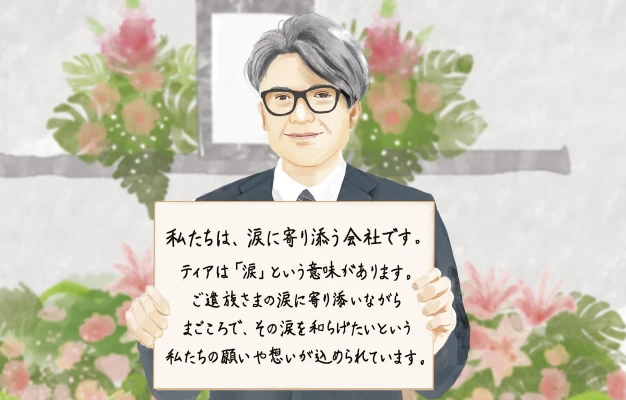 葬儀会館 ティア泉大津に葬儀のご依頼をしたい方は、050-5231-2001までお電話ください。24時間365日、夜間や休日問わずいつでも繋がります。