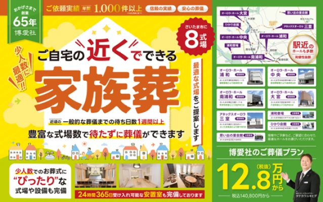 博愛社(オーロラ・ホール大宮)は一日葬や家族葬はもちろんのこと、火葬式や一般葬など様々な葬儀形式に対応しています。