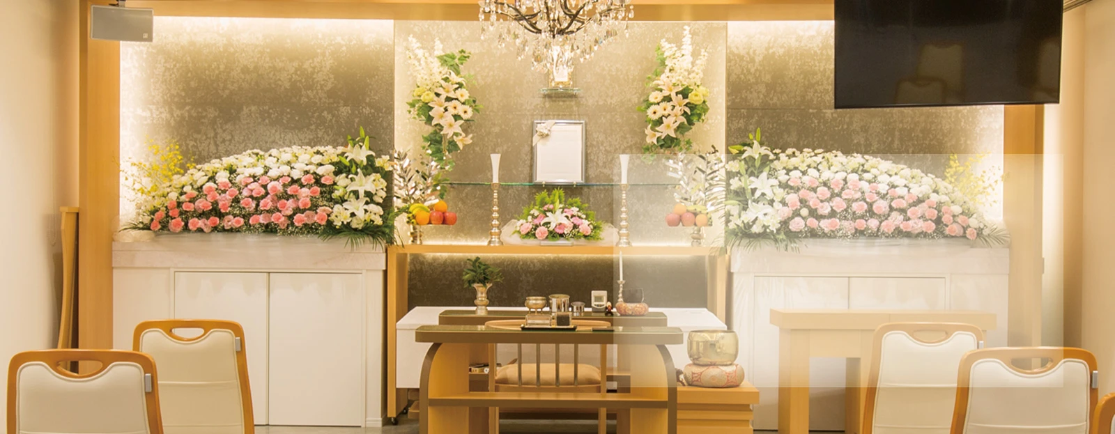 温かみのある落ち着いた雰囲気の葬儀専用ホールで、故人をお見送りするご遺族の心を大切にし、真心込めたサービスを提供いたします。