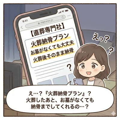 直葬専門社さんに相談してみたところ、納骨先についても一緒に相談に乗っていただけるとのことで、とても安心できました。火葬だけでなく、その後のことまで丁寧に説明してくださったのがありがたかったです。